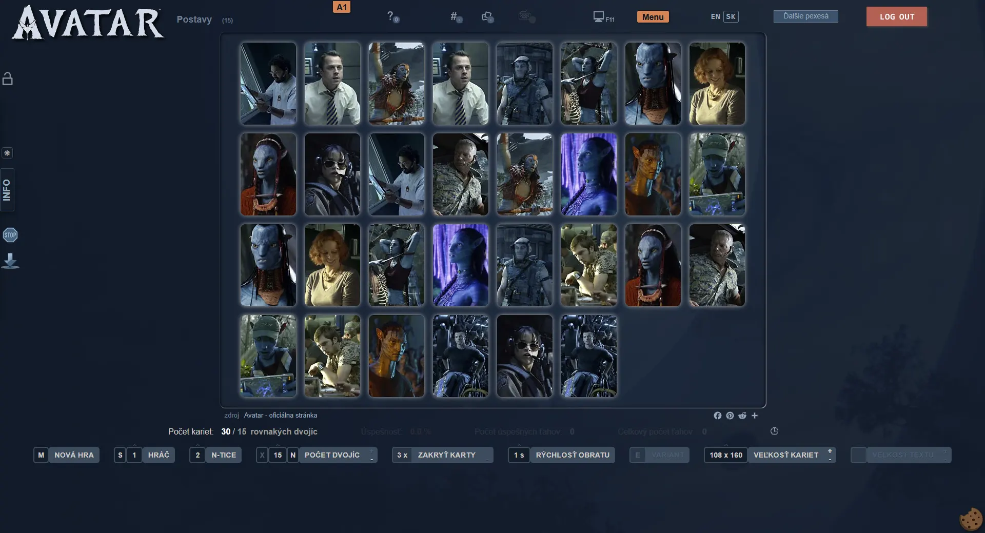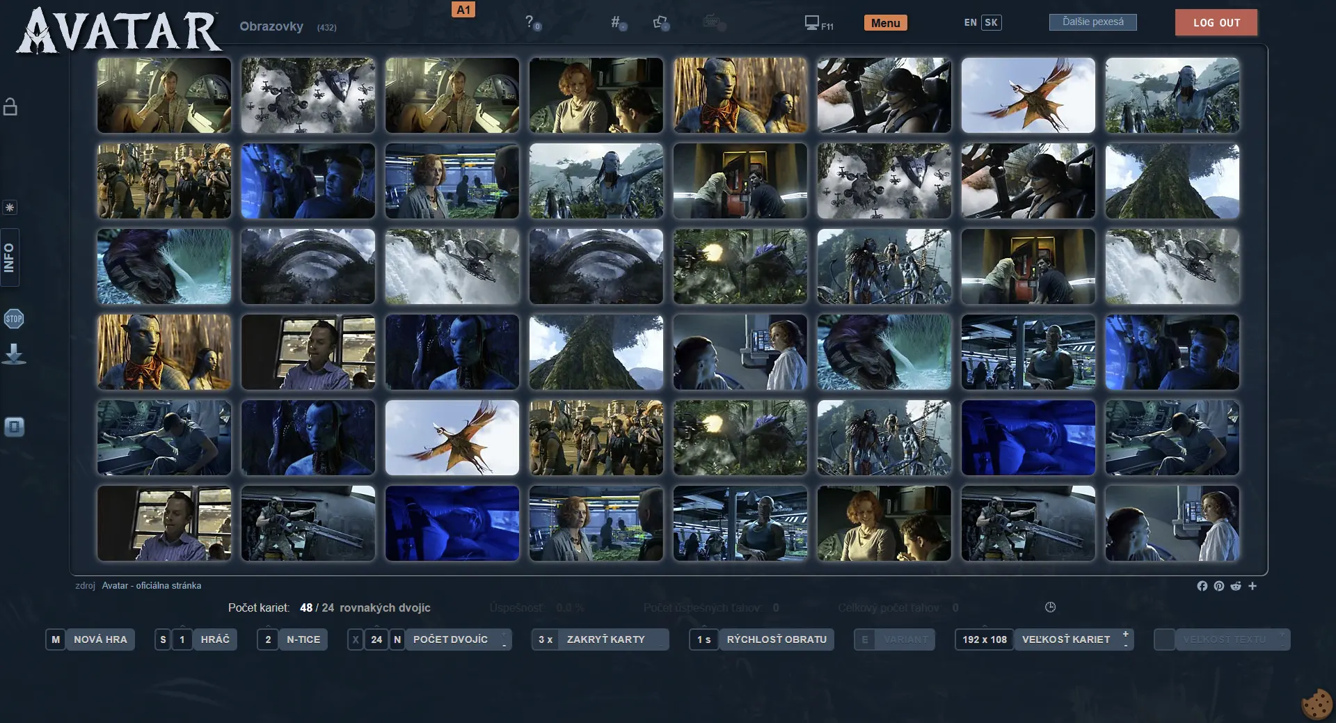 Zahrajte si pexesá inšpirované filmom Avatar. Objavte postavy, tvory a scenérie Pandory a precvičte si pamäť zábavnou formou.